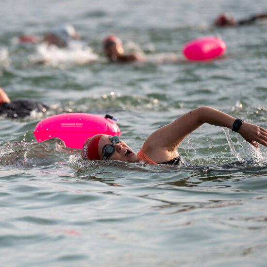 La etapa de natación se lleva a cabo en el lago de San Gil, uno de los cuerpos de agua artificiales más grandes de México y de Latinoamérica.